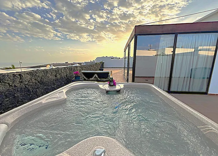 Die 2-Zimmer- Villa Casa Sankalpa Con Jacuzzi Tías liegt nur 10 Minuten Fahrweg vom Playa Chica entfernt und bietet Gästen ein Solarium und einen Jacuzzi, die für einen entspannten Aufenthalt sorgen.